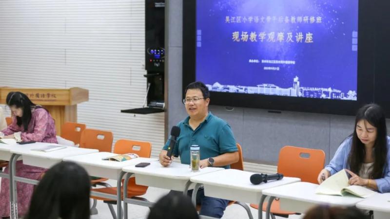 近期,2023年吴江区小学语文骨干后备教师研修班第七次活动在苏州湾外国语学校举行。苏州湾外国语学校小学部语文教师,吴江区小学语文骨干后备教师研修班学员共56人参会。