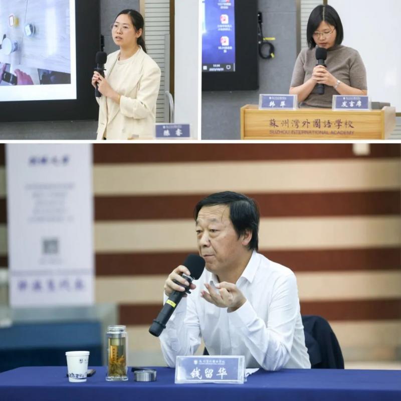 2023年10月31日,生物学拔创人才培养研讨暨吴江区孔爱华高中生物名师工作室研修活动在苏州湾外国语学校举行。江苏省泰兴中学党委书记、正高、特级、人民教育家培育对象、全国模范教师钱留华和江苏省中小学教研室教研员、教授、特级教师吴举宏发表了生物讲座。吴江区各高中校教研组长、各年级备课组长、城区学校所有高三生物教师、其他学校40岁以下的高三生物老师、奥赛教练员、高中生物名师工作室成员等参与了此次教研活动。