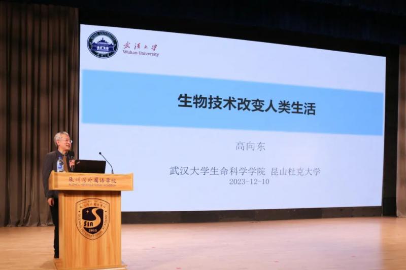 本次讲座以《生物技术改变人类生活》为主题。生物技术是一项古老的造福于人类生活的重要技术。随着时代的发展,生物技术与时俱进。在1973年重组DNA技术(基因工程)出现之后,生物技术为现代制药工业和农业生产带来革命性的改变。高教授从“基因工程”导入,深入简出的介绍了基因工程与药物、疫苗、农业关系,充分调动了同学们的积极性,现场氛围非常热烈。