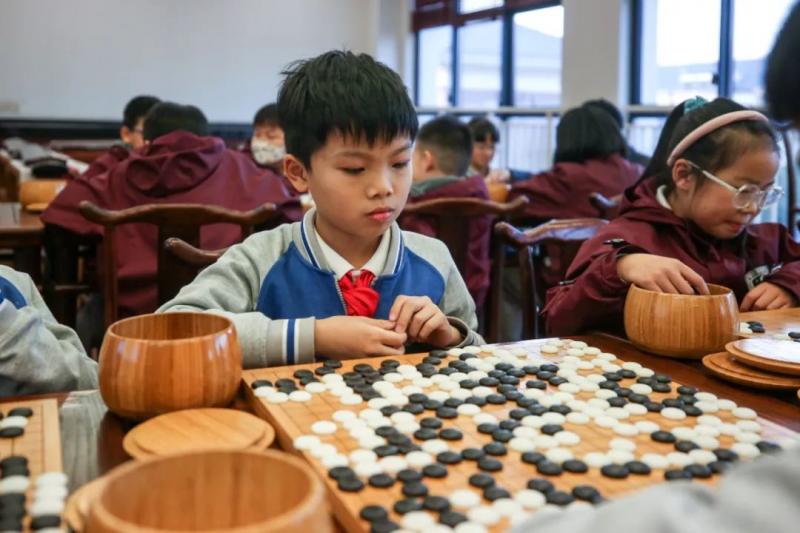 苏州湾外国语学校开设一百多门选修课,围棋就是其中一门。学校依托K12办学优势,在幼儿园、小学、初中多阶段链式化开设围棋课堂。