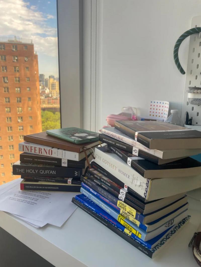 还记得第一学期,一门写作阅读课、一门哲学课、一门艺术与历史、一门数学。 其中三门课都需要大量的英文阅读及论文写作。教授会给我们布置阅读书籍作为每周的作业,有苏格拉底、亚里士多德等先哲的著作,奥德赛、古兰经等等,在国内都很少接触,一开始心态都有点崩了。