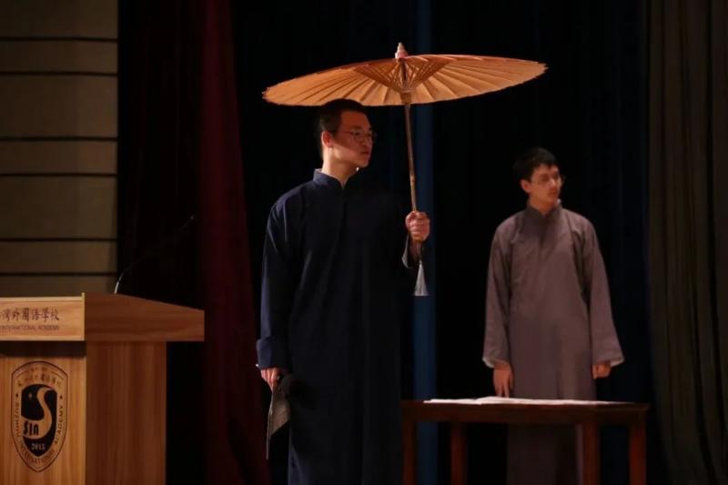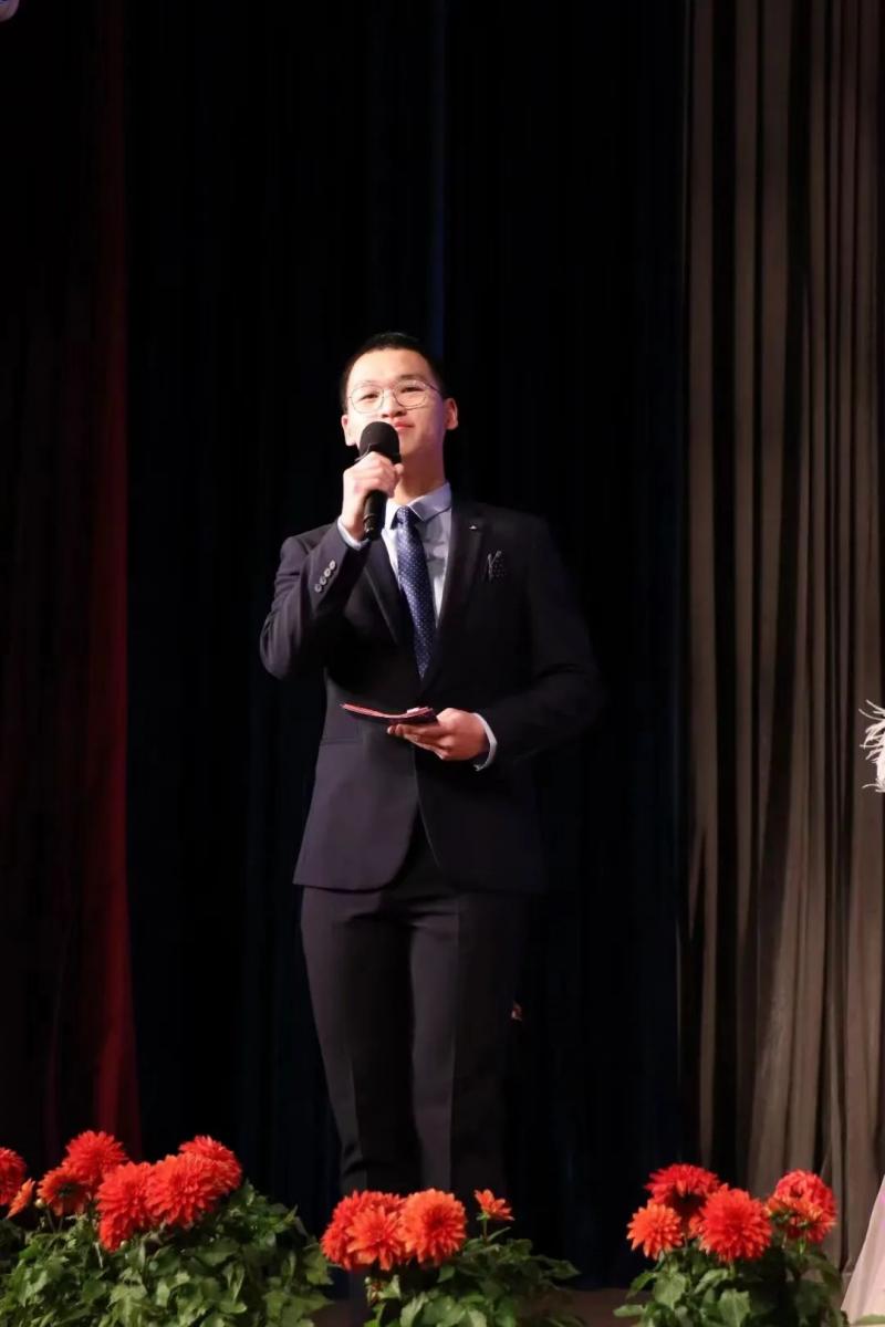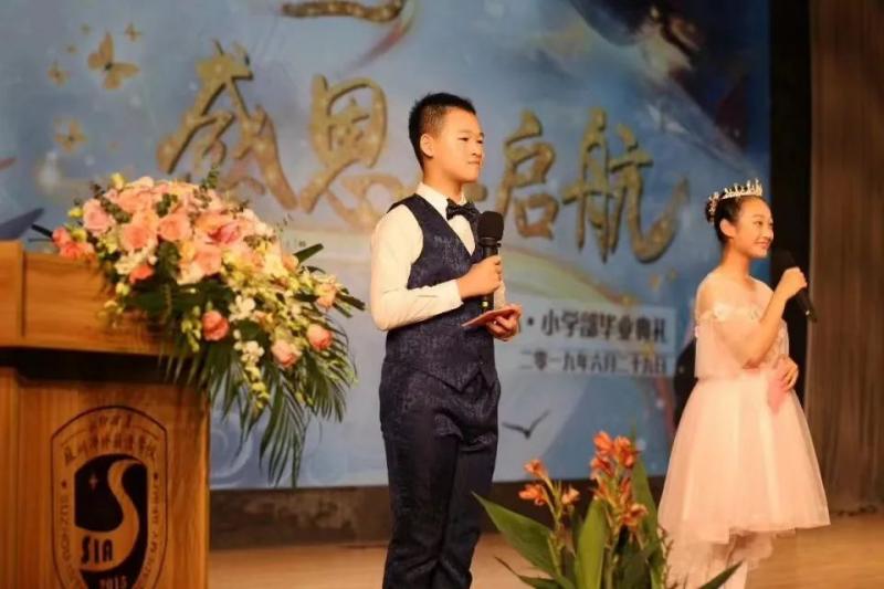2015年,从小喜欢讲故事的博天被老师推荐担任小学部第一届迎新汇演小主持。记得当天,除了主持外,他同时还参与两个节目的展演。作为助理的我在后台给他快速换装时,小家伙突然拉着我手说:“妈妈,台下好多人,黑压压的。我现在好紧张”。