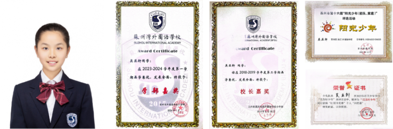 2024年“新时代苏州好少年”活动由苏州市文明办、苏州市教育局、共青团苏州市委、苏州市妇联、苏州市关工委共同组织开展,共推选出50名“新时代苏州好少年”。吴亚轩同学凭借耀眼的履历成为吴江区入围的5名同学之一。她,阳光健康、热爱运动,是校运会100米和200米纪录的保持者;她,努力上进、热爱学习,各课成绩名列前茅,被授予“学部嘉奖”“校长嘉奖”,还曾获“江苏省好少年”“苏州市阳光少年”等荣誉。