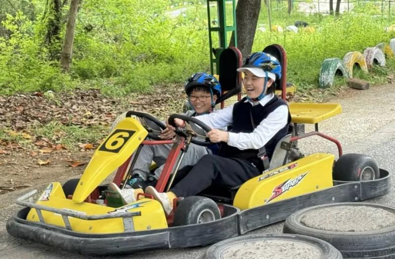 趁着春意正浓,五年级的同学们满怀期待地来到了西山牛仔俱乐部。同学们迫不及待地踏上马背当起了骑士,坐上卡丁车勇往直前;缅甸桥上,同学们感受着红军“飞夺泸定桥”的无畏和力量。