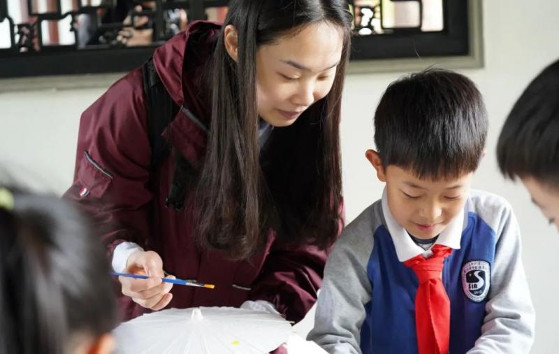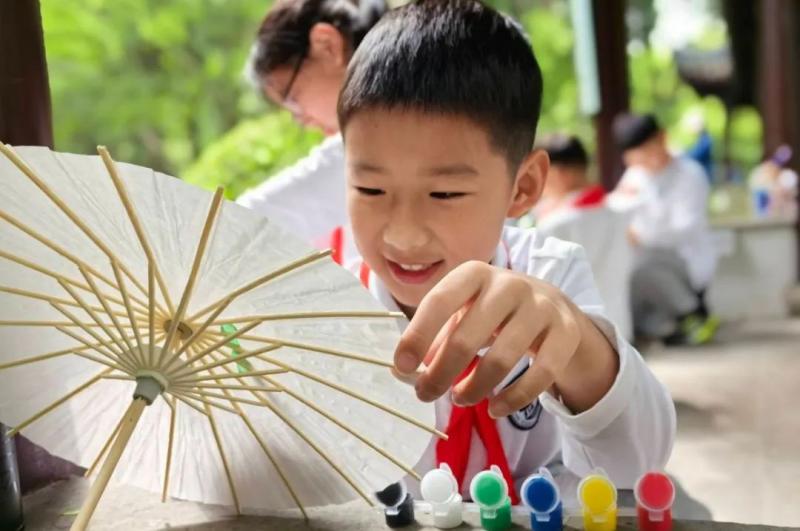 在太湖之滨私家园林,孩子们领略苏式园林之美,了解“启园三宝”的故事。孩子们在这里亲手绘制油纸伞,让艺术在指尖绽放,伞下每一笔都是春色满园的印记。
