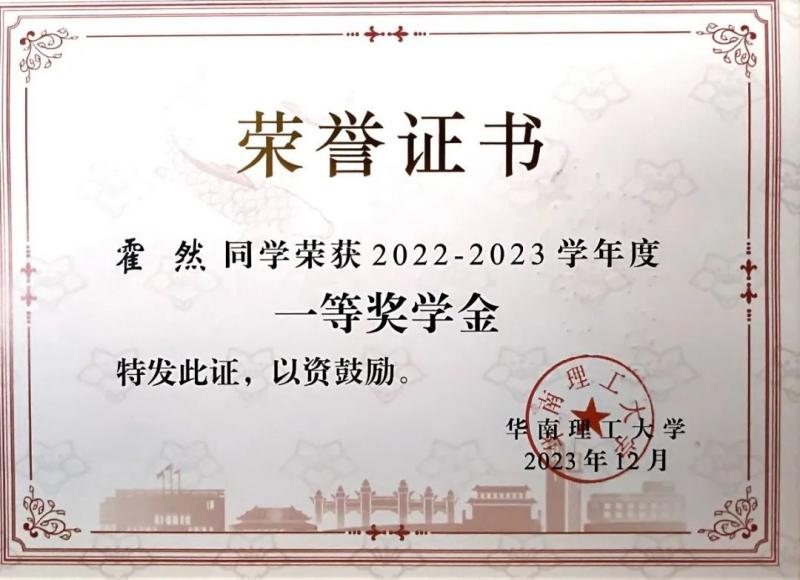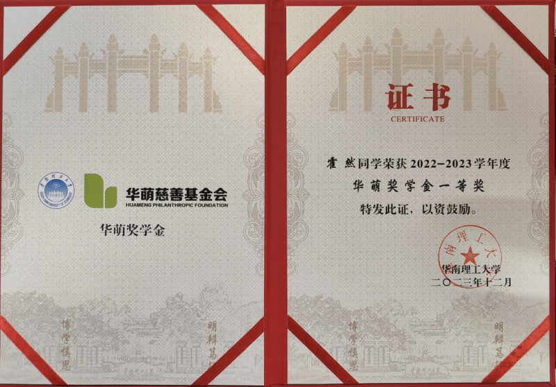 姓名:霍然 (华萌奖学金一等奖获得者)