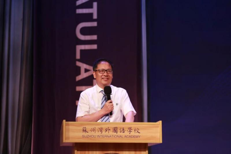 同学们,随着今天毕业典礼的结束,你们为自己的基础教育画上了圆满的句号,同时将开启充满机遇与挑战的大学生活。我相信湾外学子都能很好地适应大学生活,临别之际想叮嘱一二。