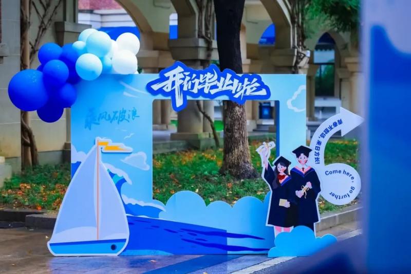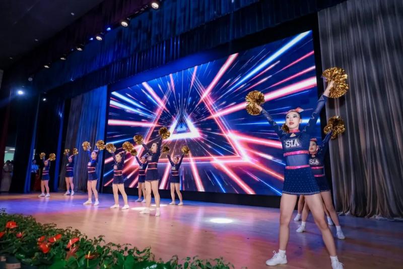 今天我们就要毕业,去往美好而未知的远方,就让我们带着期待与祝福出发,不负心中的梦想与期望。瞧!啦啦操社团的同学们舞姿动人,活力四射。
