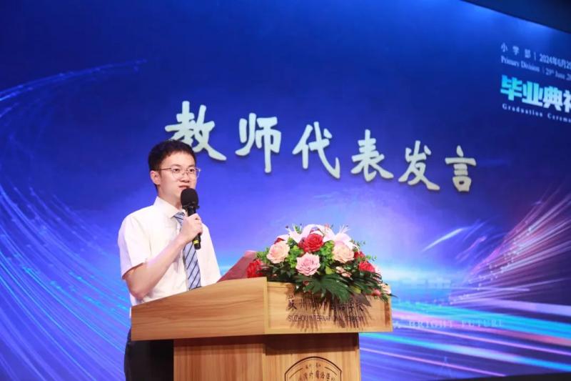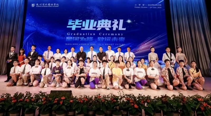 在这个值得纪念的日子里,苏州湾外国语学校总校长尤文亮先生送给同学们三句话:知识广博,铸就基石;品行雅正,塑造灵魂;星河为路,无畏前行。希望全体六年级毕业生们乘风破浪,不负年华。