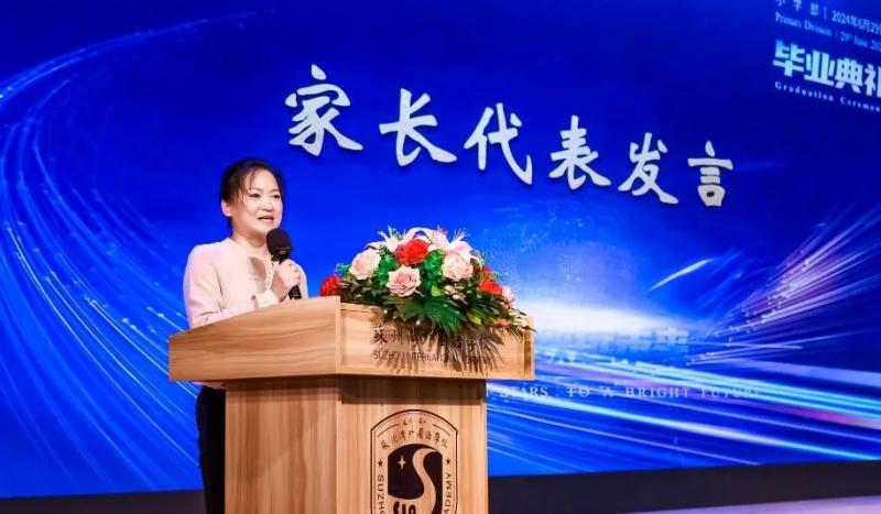 家长代表王瑶妈妈上台发言。湾外老师对孩子的谆谆教导与付出,让她感慨选择湾外是如此值得。她也希望孩子们在以后的学习旅途中继续奋发上进,不辜负家长的期望,更不辜负学校和老师的培养。