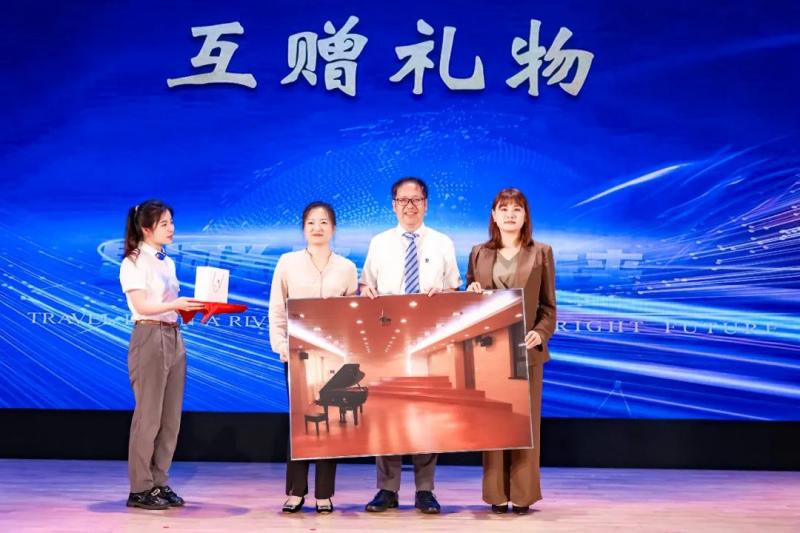 家长代表王瑶妈妈、从壹舒妈妈代表全体家长为学校捐建音乐厅,作为特别的纪念。总校长尤文亮先生也代表学校回赠每位学生一个精致的八音盒,按下按钮,校歌《因为有你》的旋律传达着对SIA学子的殷殷期盼!