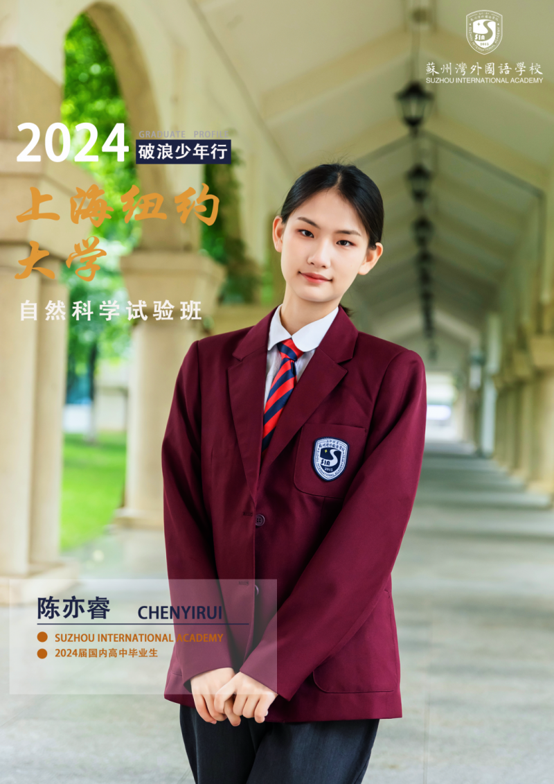 七年级时的BEO(British English Olympics)比赛,让她明白学习不仅仅是理解书本上的知识,更是一个动态的探索实践过程。高一时参加的模拟联合国活动,全英文做议案,与其他代表辩论等环节,让她了解团队合作的重要性,学会了有理有据地说服他人,潜移默化中,陈亦睿也为申请上纽做好了准备。