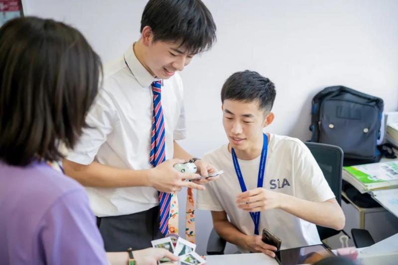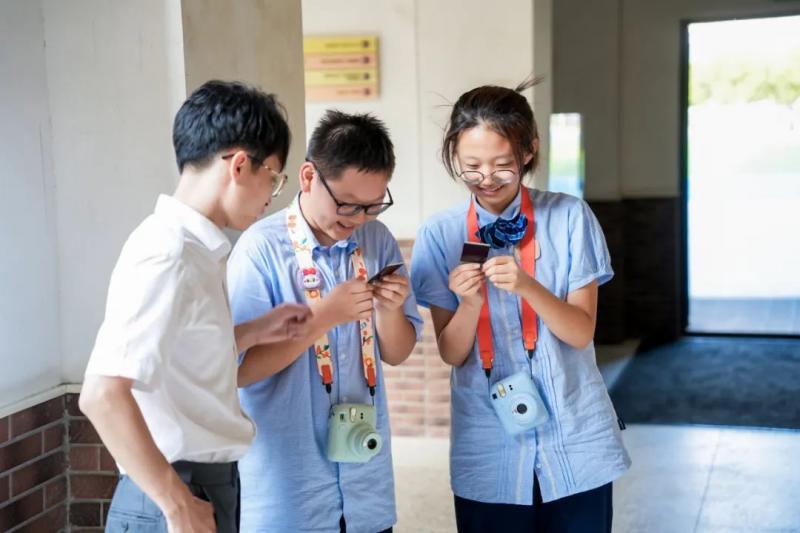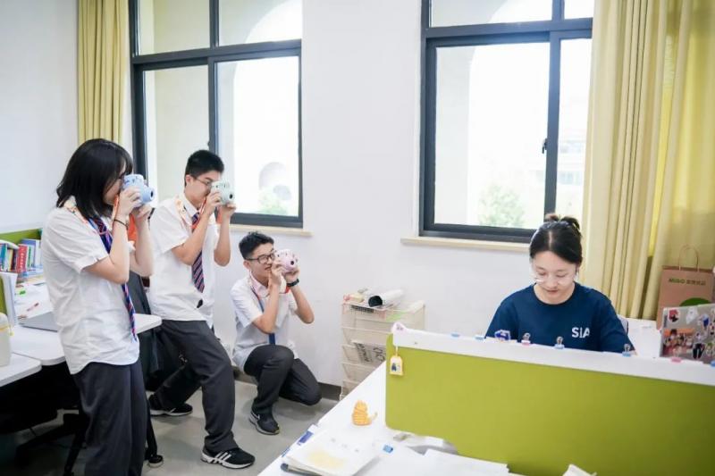初中部的老师们是学生们的最信任的知心伙伴,初中部的学长学姐们穿梭于教室间,记录下老师们工作时耀眼的身影。“一次成像相机可以帮我定格美好瞬间。相纸成像后,会比储存在手机相册里的照片更有让我反复回味的冲动。”七(8)班的李懿嘉和今天的摄影搭档俞季希同为摄影爱好者,借此机会留下了和老师们美好的回忆。
