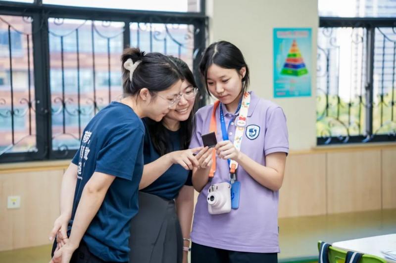 小学部的老师们是学生最好的玩伴,同学们纷纷拉着老师们与自己合影,“哇,你们拍到了和宗宗老师的合影,真羡慕!”四(1)班的何懿凡刚展示出自己拍摄的照片,就吸引了周围同学的目光。大家口中的“宗宗老师”是四年级的语文老师,亲切的性格和活泼的授课模式让同学们都愿意和这位年轻的语文老师打成一片。在何懿凡眼中,宗宗老师就像一个明亮的小太阳,总能让大家感受到快乐,深受大家喜爱。