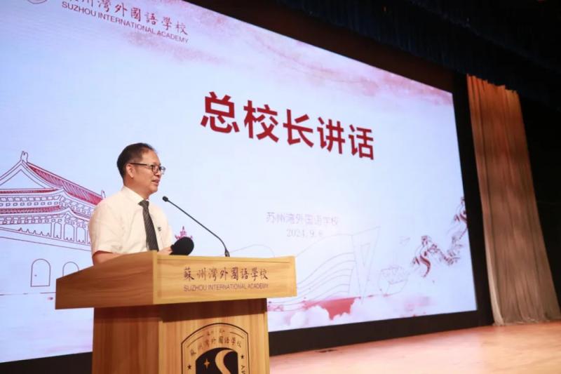 苏州湾外国语学校总校长尤文亮在会上致辞,在祝愿全体教职工节日快乐的同时,倡导大家弘扬新时代“大先生”之风,在教师岗位上继续精进,不仅要教书,更要育人,为学之道,身先垂范。