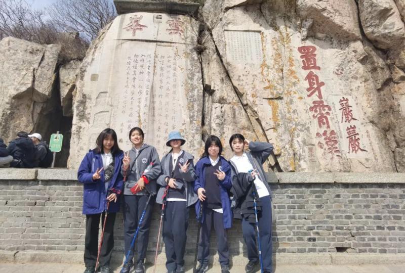 | 登顶泰山(左二)为了孩子更好前途,湾外给了我充分保障和信心。每当周五,我需要早上4:30起床,5点钟出发,6点钟到机场,坐7点航班飞上海,10点钟降落浦东机场,再开车2小时到苏州,历经8个多小时辗转周折。如此接送每周飞机往返,我们坚持了2年。两年期间,还遇到种种困难:疫情期间曾因核酸等问题数次不能登机,需要临时买机票飞到无锡、南京等地,再坐各种交通工具地铁、高铁等去机场取车,再返回苏州。每当车停在校门口等孩子放学那一刻,一切都是值得的。