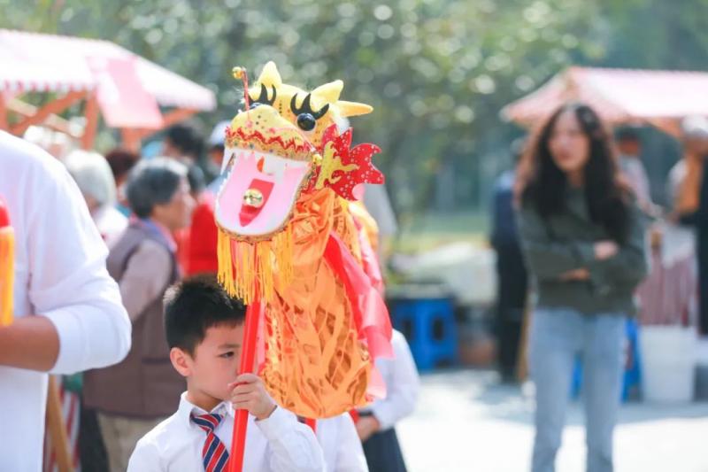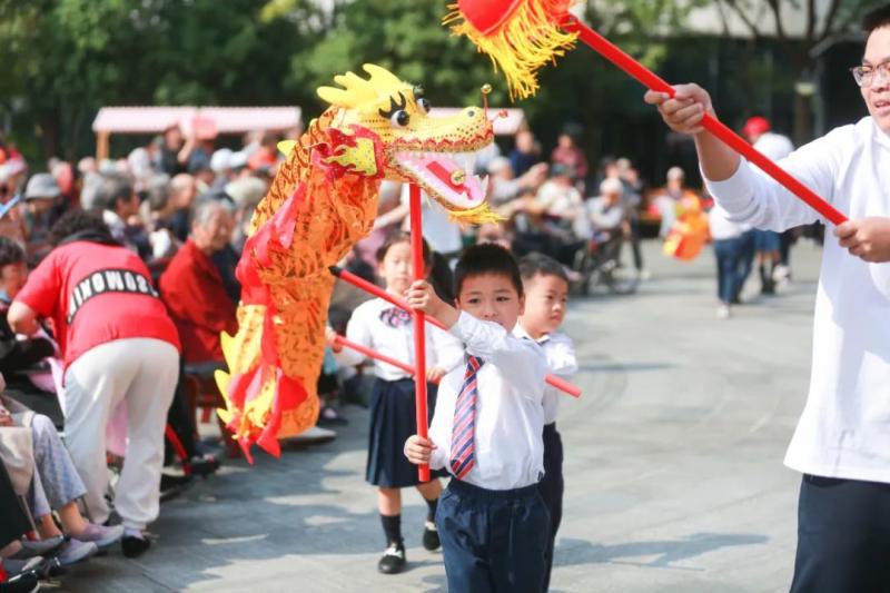 蜿蜒盘旋的金龙,在小朋友们的舞动下,栩栩如生,它不仅象征着吉祥与活力,更寓意着爷爷奶奶们如龙般精神矍铄,健康长寿。