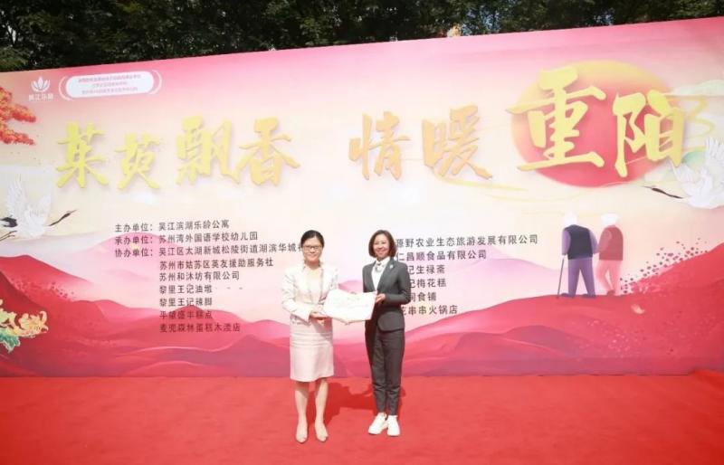 |吴江乐龄公寓戈总为苏州湾外国语学校幼儿园龚炜园长颁发荣誉证书