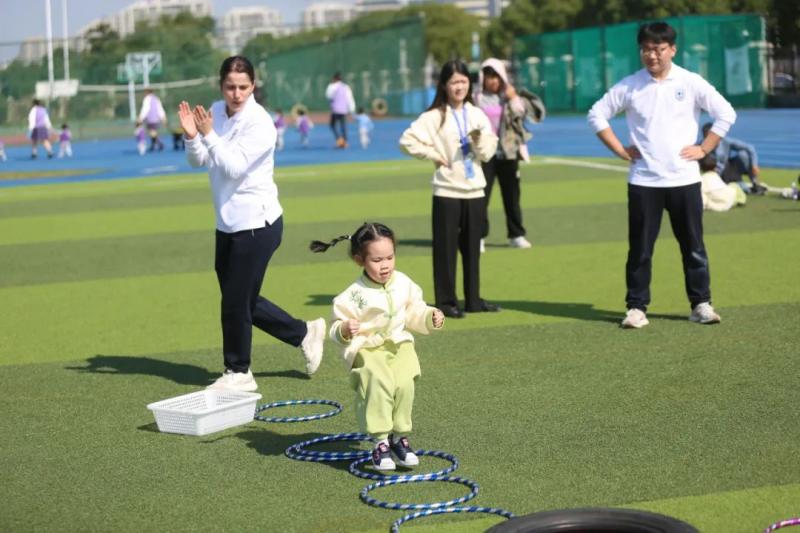 本次“悦运动,越健康”亲子运动会分为年级展示、趣味项目以及竞技项目。各年级组老师根据孩子们的年龄特点设置了丰富的趣味体育游戏。