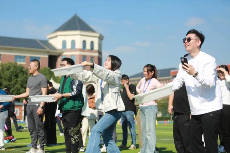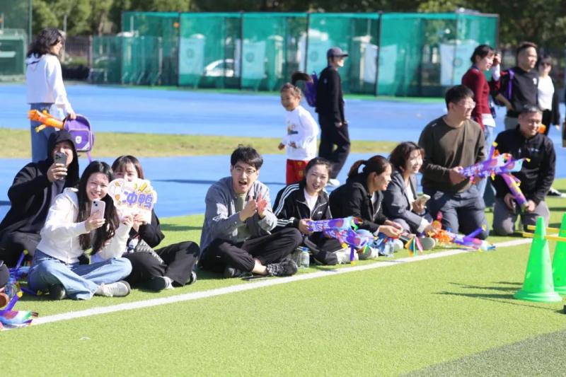 “比赛?我们是认真的!”孩子们比完,家长与老师们也纷纷上阵,化身运动员在10x100往返跑接力赛中一比高下。