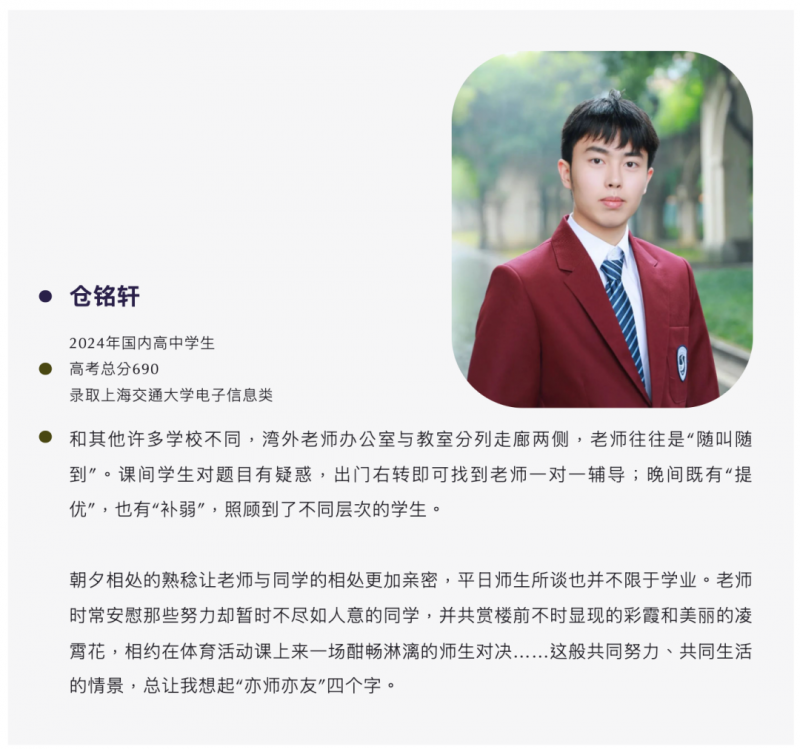 更为重要的是,学生在这里学业成绩与综合素质发展齐头并进,社团选修课程丰富,课外实践活动常态,生生和师生关系和谐,身心健康,特长鲜明。