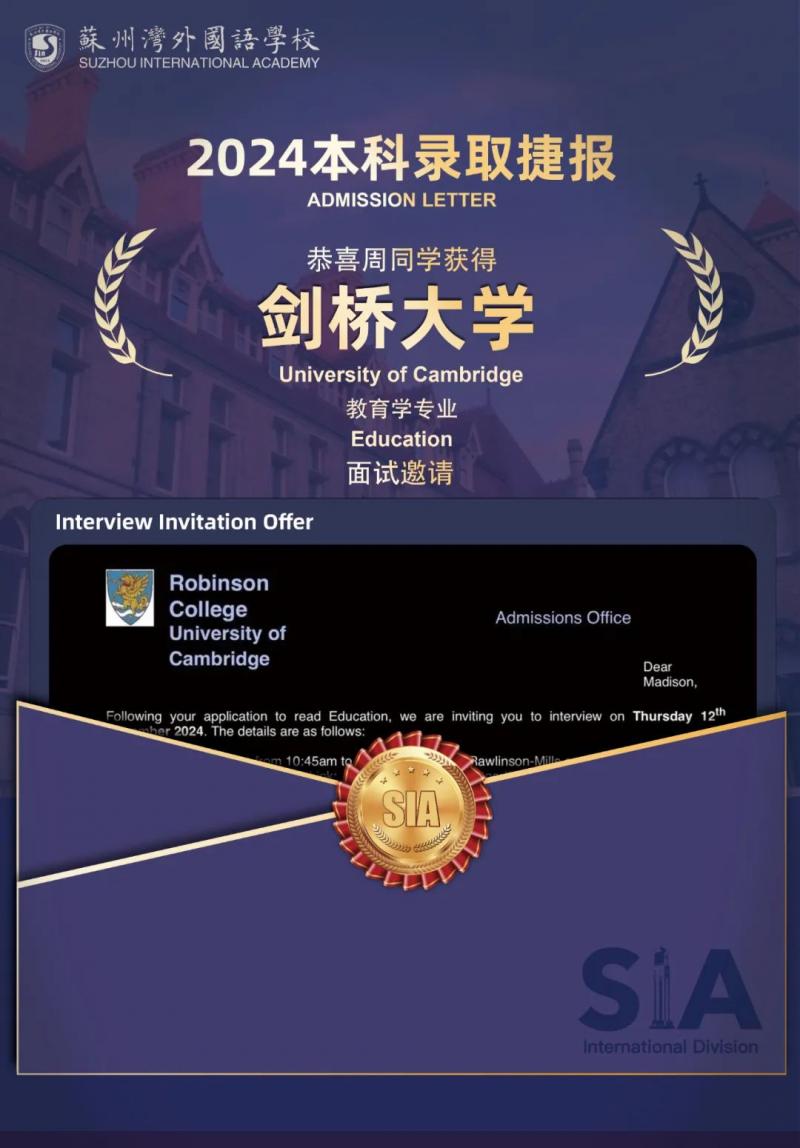 剑桥面邀第三封 | 湾外国际部喜讯三连发