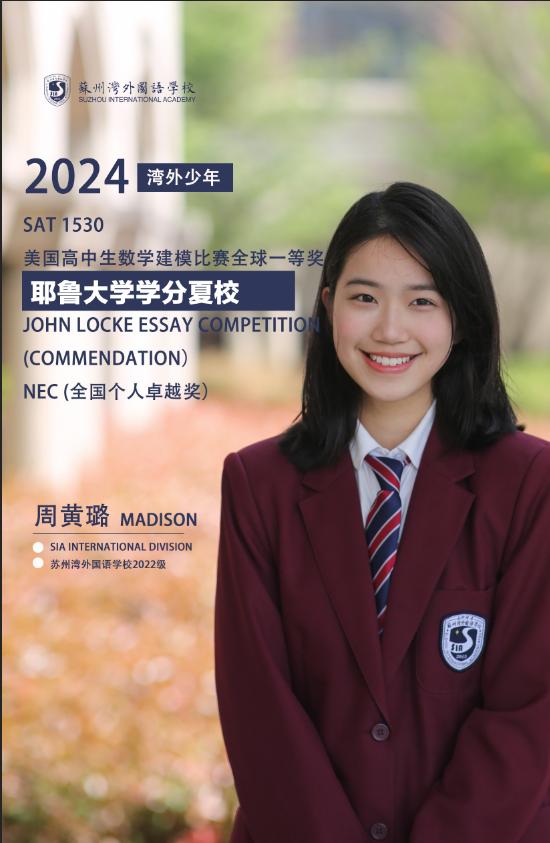 周同学初一进入湾外,曾获HiMCM数学建模大赛一等奖、NEC经济学竞赛金奖、John Locke论文大赛Commendation、录取耶鲁学分夏校。湾外国际高中从2015到2024,学生相继入读剑桥、牛津、帝国理工、伦敦政经、加州伯克利、卡耐基梅隆、纽约大学、香港大学等世界顶尖名校。毕业生100%进入世界排名前100或专业排名前10大学,2022届G5院校申录比100%,U.S.NEWS前30大学申录比达87%,2023届100%录取世界前50大学。2024 届41%同学收到英国G5大学offer ,37%同学拿下美本前30offer。