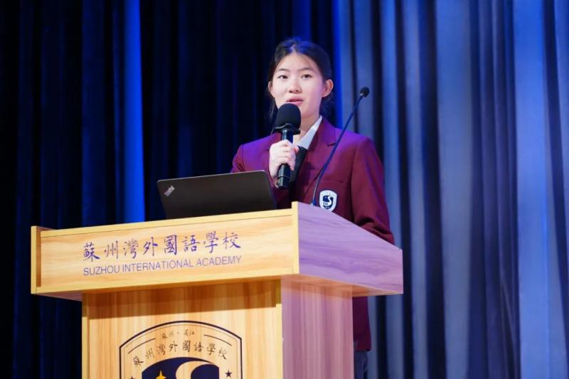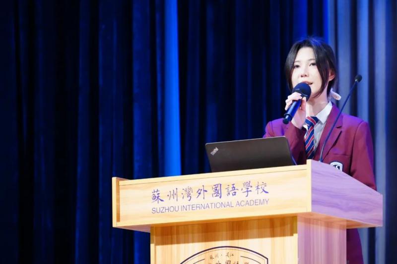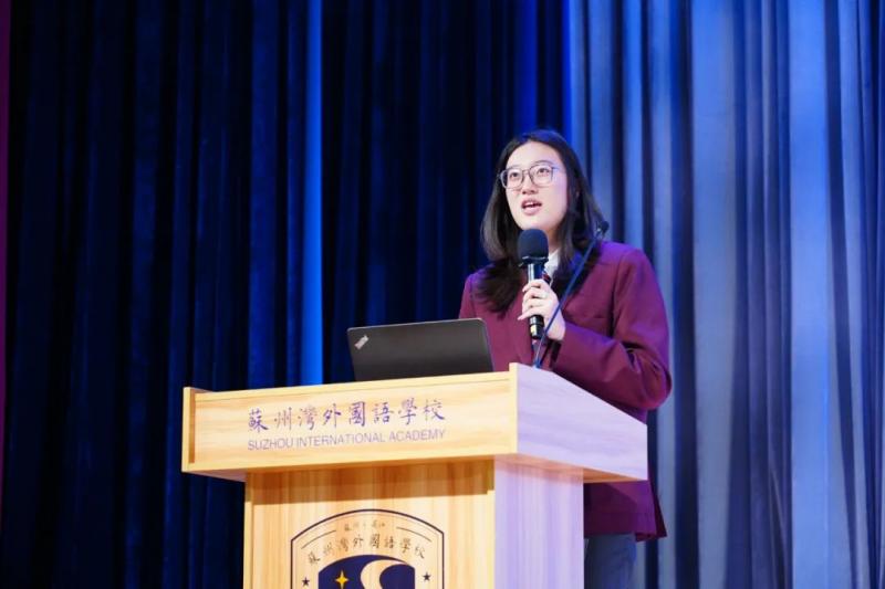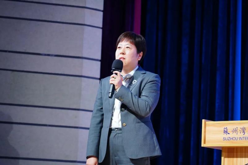 苏州湾外国语学校副总校长兼国际部校长陈黎女士向各位家长学生做主题演讲,详细介绍了学校的教育教学情况。
