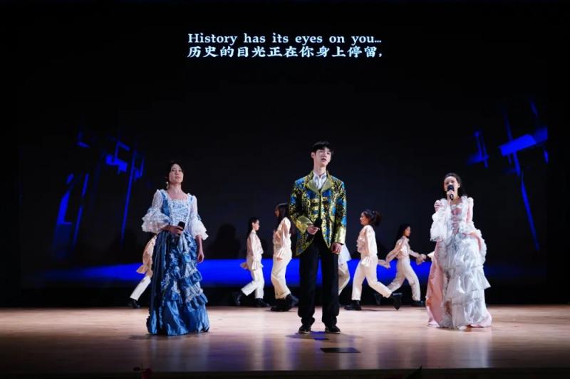 活动伊始,国际部学生以一曲动感十足的现代舞拉开了序幕。紧接着,是国际部同学英文音乐剧《Hamilton》选段表演,演员们以其精湛的演技和优美的歌声赢得了观众的阵阵掌声。这些表演不仅展示了国际部学生多才多艺的一面,也点燃了全场的热情。